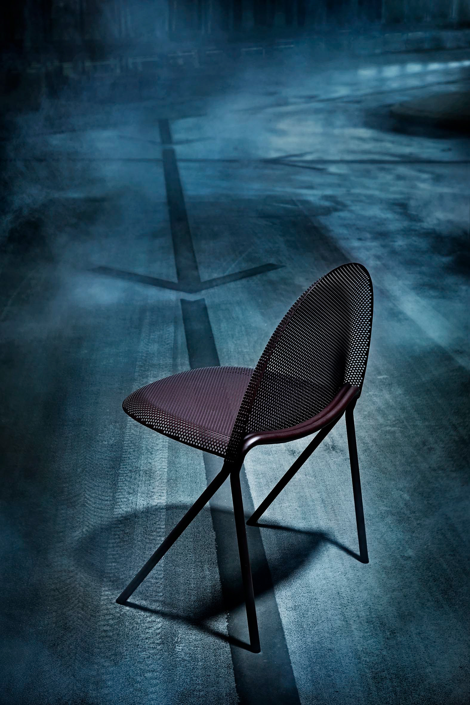 ‘Volume’ is made from two pieces of perforated steel sheets, which are pressed in shape creating a strong and curved seating held together by the simple meeting of the tubular steel legs. The appearance of ‘Volume’ is both solid and see-through showing the unique qualities of steel, which is strong yet flexible at the same time. The perforated sheet material enables an honest and detailed design in a soft curved shape creating a comfortable and fully recyclable chair. Steel is a modern material that outperforms all other materials when it comes to strength, durability vs. availability and costs – it is a material which through history has proven to be a key player in creating innovation and new technology, from the industrial world of the Eiffel Tower to the ancient Chinese weaponry.