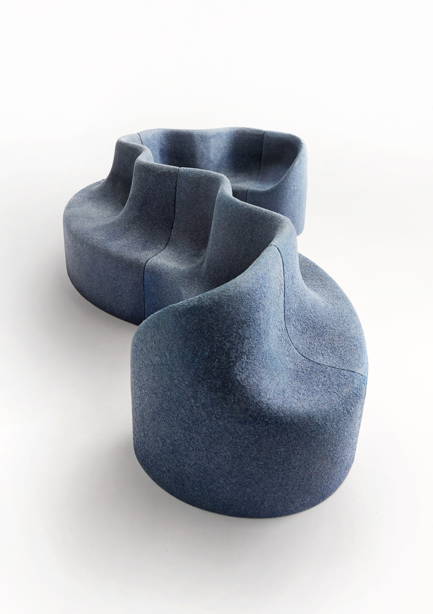 Material: Paper pulp / Postconsumer and bio foam / knitted textile